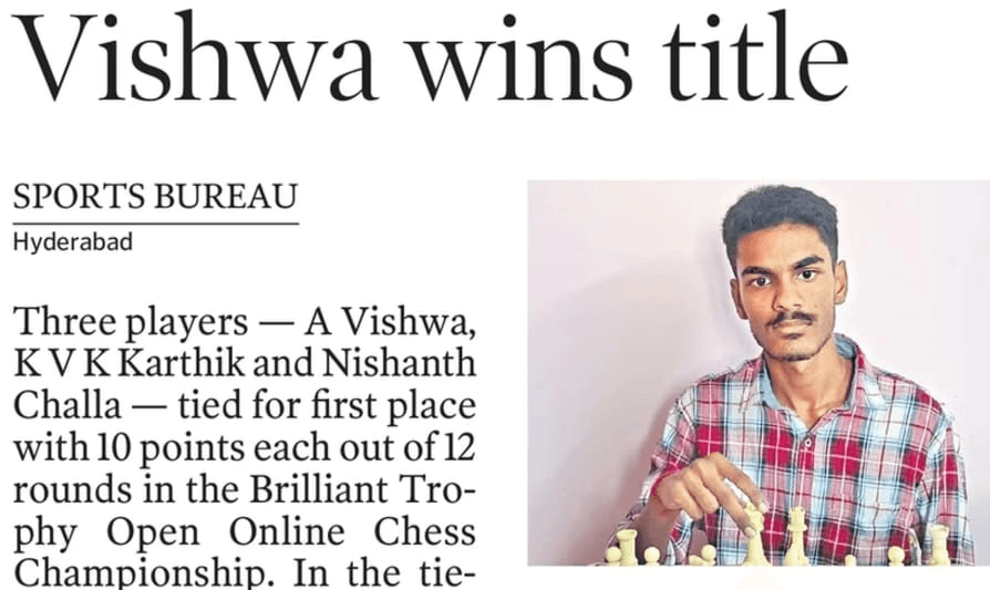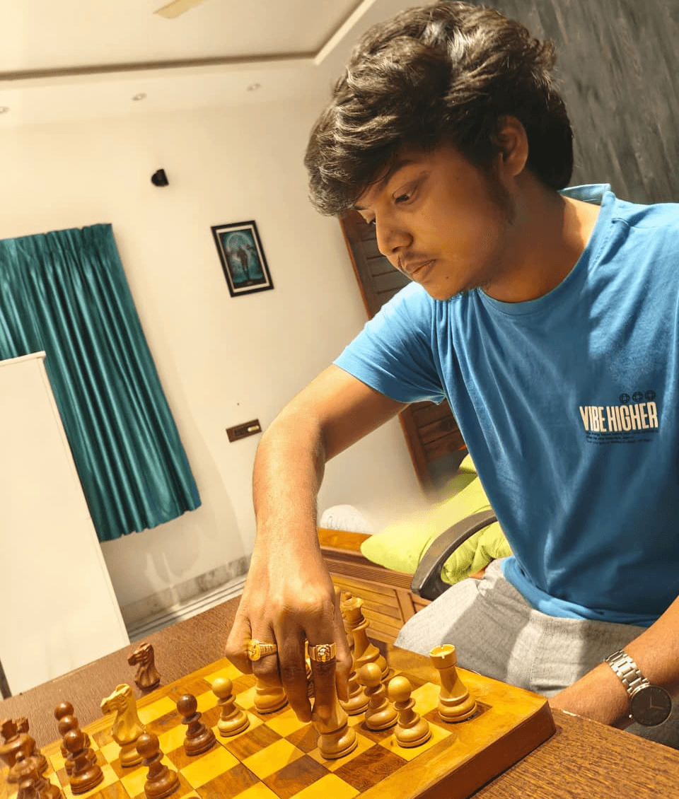 Vignesh B is a highly accomplished chess player with achievements at state, national, and international levels. He is a State Open Champion, a two-time State Blitz Champion, and a State Rapid Champion. He won a silver medal at the Junior (Under-19) Nationals and represented India at the World Junior Chess Championship. He also secured first place at the Sri Lanka International Chess Tournament.
